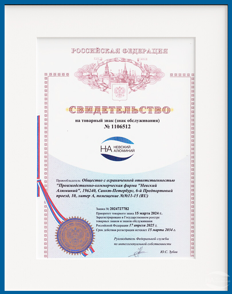 23.07.2025 Невский Алюминий зарегистрировал товарный знак