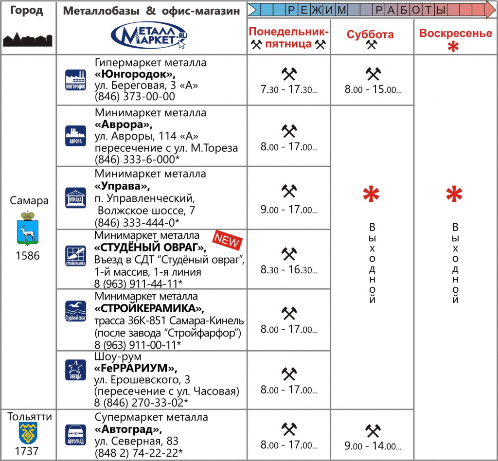 МЕТАЛЛ-МАРКЕТ обращает внимание на весенний шестидневный режим работы всех 6 металлобаз.